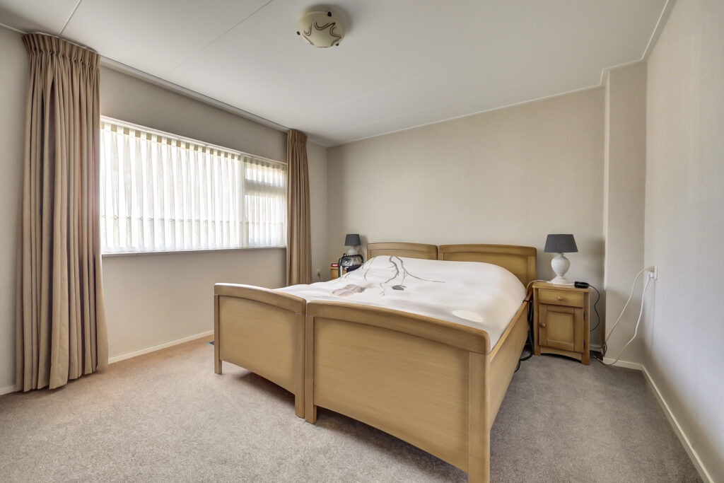 De slaapkamer op de begane grond is ruim opgezet (12 m² ) en ligt gunstig naast de volledig badkamer. Deze is compleet uitgevoerd met een ligbad, douche, wastafelmeubel en toilet, en biedt daarnaast ruimte voor het wasapparatuur. Hiermee is gelijkvloers wonen hier optimaal ingericht.