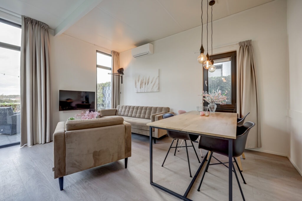 Het geheel is gebouwd in 2016 en verkeert in een uitstekende staat van onderhoud. De woning is met zorg ingericht en biedt dankzij de doordachte indeling ruimte aan zes personen. Er zijn drie comfortabele slaapkamers, een sfeervolle woonkamer met veel lichtinval en een moderne open keuken die van alle gemakken is voorzien. De woning wordt volledig gemeubileerd overgedragen, zodat je zonder gedoe direct kunt genieten van jouw vakantie, de verhuur kunt starten of kunt kiezen voor een combinatie van beide.