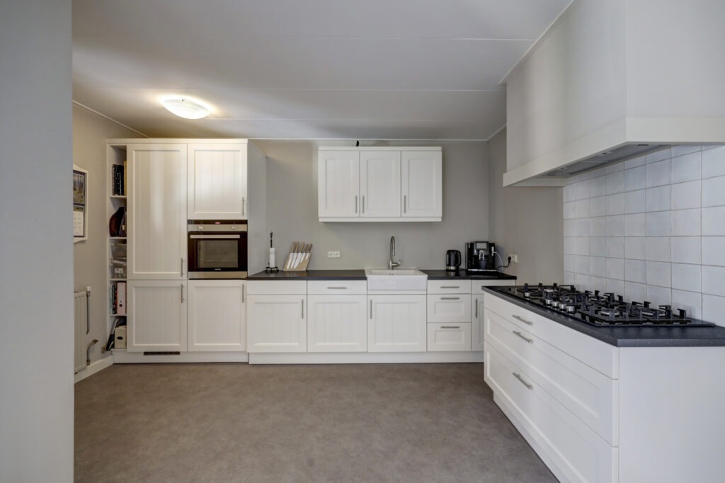 De uitgebouwde keuken is ruim van opzet en prettig in gebruik. Aansluitend vind je de bijkeuken, waar onder meer de cv-ketel uit 2018 en de installatie van de zonnepanelen zijn geplaatst. Vanuit de keuken is ook de kelder bereikbaar, ideaal als bergruimte. Vanuit de keuken loop je via de openslaande deuren direct het terras op. Hier zit je heerlijk om op lange zomeravonden buiten te dineren en van het buitenleven te genieten. Ook via de bijkeuken heb je toegang tot de tuin.