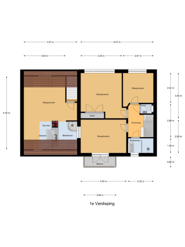 Op de eerste verdieping beschik je over drie slaapkamers, een badkamer en toilet. De ouderslaapkamer is voorzien van een praktische inbouwkast en op een deel van deze verdieping ligt een vinylvloer. Verder is het prettig dat het toilet apart van de badkamer is gesitueerd. De slaapkamer aan de voorzijde beschikt over een balkon.