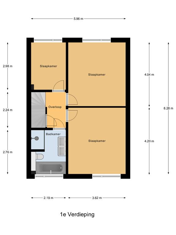 visgraatvloer. Warm, luxe en comfortabel. Via de trap kom je op de overloop, waar je toegang hebt tot drie slaapkamers en de badkamer.