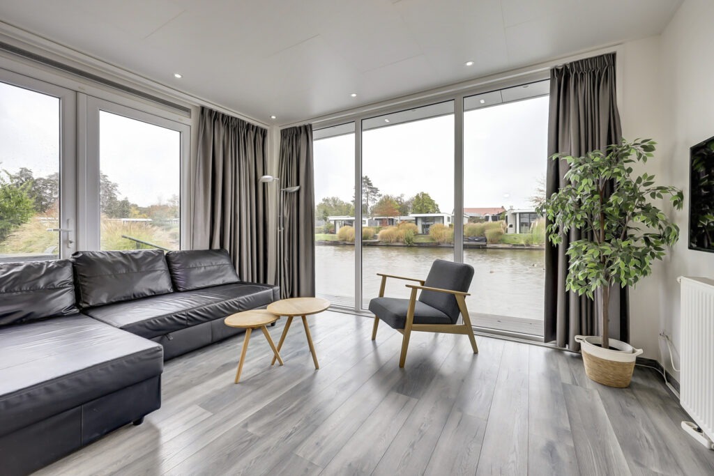 De woning straalt comfort en kwaliteit uit. Dankzij het gebruik van duurzame, onderhoudsarme materialen en goede isolatie is het hier het hele jaar door prettig verblijven. De lichte woonkamer met grote raampartijen biedt een fraai uitzicht over het water, en via de openslaande deuren loop je zo het zonnige terras op. De woning wordt compleet gemeubileerd en gestoffeerd aangeboden, je hoeft alleen nog je koffers mee te nemen!